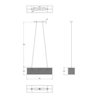Royale afmetingen: 700 mm (lengte) × 200 mm (breedte) × 245 mm (hoogte) – perfect als blikvanger boven een eettafel of in een open leefruimte.