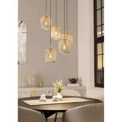 Beschrijving Eglo Pendelarmatuur Romazzina Staal Zanderig | Geschikt voor 5x E27