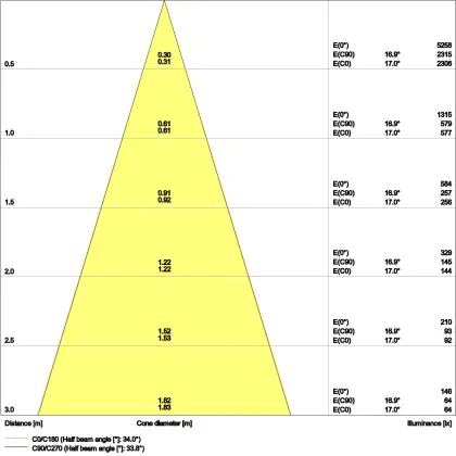 De lichtopbrengst en de gradenbundel spelen een grote rol. Zo geeft de lichtopbrengst van 680 Lumen in combinatie met de 36° stralingshoek deze inbouwspot een specifieke toepassing. Kort samengevat is een lichtintensiteit van maximaal 400 Lumen ideaal voor accentverlichting, terwijl hogere waardes goed gebruikt kunnen worden als basisverlichting. Over het algemeen geldt: hoe breder de gradenbundel, hoe geschikter deze is door basisverlichting. Dit komt doordat het licht over een groter oppervlak wordt verspreid. Smallere gradenbundels (tot 40°) kunnen echter bij hoge plafonds ook goed tot hun recht komen als algemene verlichting.