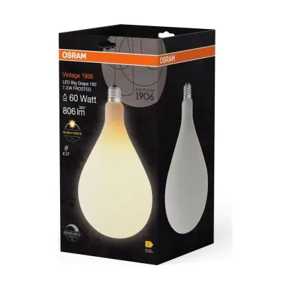 Beschrijving Osram Vintage 1906 LED Big Grape E27 Filament Mat 7.3W 806lm - 827 Zeer Warm Wit | Dimbaar - Vervangt 60W