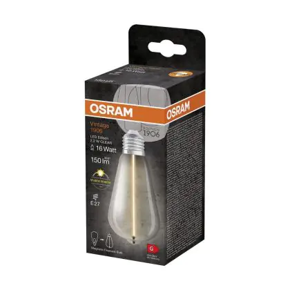 Beschrijving Osram Vintage 1906 LED E27 Special Filament Helder Edison 2.2W 150lm - 827 Zeer Warm Wit | Vervangt 15W