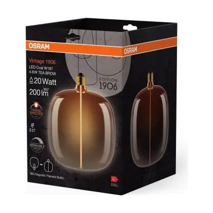 Beschrijving Osram Vintage 1906 LED E27 Special Filament Smoke Tall 4.8W 200lm - 818 Zeer Warm Wit | Dimbaar - Vervangt 25W