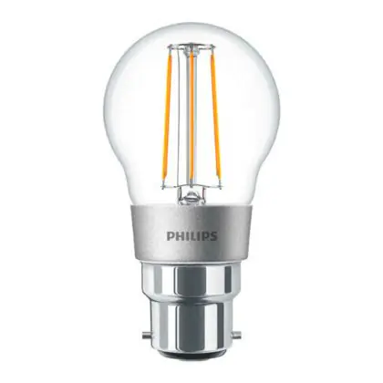 Deze Philips LED lamp heeft een B22 Bajonet fitting. Omdat de B22 fitting dezelfde is als op zijn conventionele tegenhanger, is de installatie zeer eenvoudig. Binnen no-time kan jij genieten van alle voordelen van je nieuwe LED lamp! Verder heeft deze LED lamp een peer vorm en helder glas, waardoor je het stijlvolle LED filament goed kan zien.