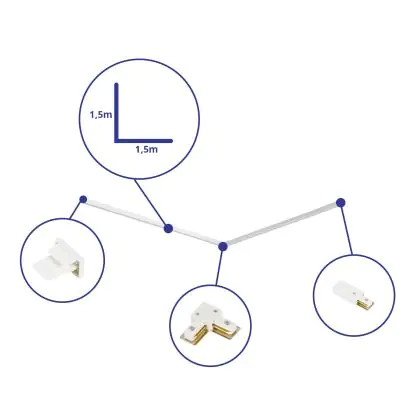Beschrijving Rail Set 1-Fase L 1,5 x 1,5 Meter Wit | incl.Eindkap, Voedingsconnector en L -Verbindingsstuk