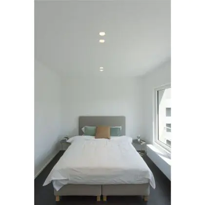 Vele LED inbouwspots bij Lampdirect zijn dimbaar, maar voor deze inbouwspot geldt specifiek: ‘Dimbaar i.c.m. dimbare lamp’. Het voordeel van een dimbare LED inbouwspot is dat je de lichtintensiteit kunt aanpassen aan de hoeveelheid licht die de ruimte nodig heeft. Zo heb je bijvoorbeeld meer licht nodig als een ruimte gebruikt wordt voor een vergadering, als wanneer diezelfde ruimte na het overleg gebruikt wordt voor een borrel.