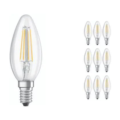 Beschrijving Voordeelpak 10x Ledvance CLASSIC LED E14 Kaars Filament Helder 4W 470lm - 840 Koel Wit | Vervangt 40W