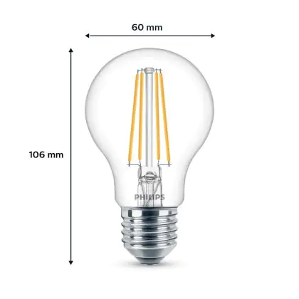 Naast de kleurtemperatuur speelt het uiterlijk van de lamp een belangrijke rol. Ga je voor mat glas of liever helder/gekleurd glas, waardoor je het LED filament (de oranje kooldraad) goed kunt zien? Heb je ook al nagedacht over de vorm en grootte? Deze E27 lamp heeft als vorm: Peer. Ten slotte heb je bij ons een zeer ruime keus aan dimbare E27 LED lampen. Hierbij heb je een LED dimmer nodig. Wil je extra informatie over E27 LED? Lees dan onze blog: Hoe vind ik de juiste E27 lamp?