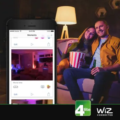 Aangezien deze WiZ slimme lamp werkt met behulp van Wi-Fi, heb je geen externe hub nodig om de verlichting te laten werken. Je hebt enkel de WiZ App nodig om de lichtbron te koppelen. Dit alles is binnen 59 seconden geregeld! Heb je de lamp gekoppeld, dan kun je de verlichting aanpassen aan elk moment. Bijvoorbeeld een ontspannen avondje thuis, een sfeervolle filmavond of een typische werkdag (WiZ licht geeft je weer zin in je werk).